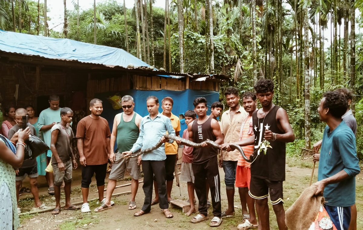 नागराकाटा प्रखंड के नयासैली चाय बागान के लाइन काटा इलाके में सोमवार दोपहर करीब ढाई बजे 12 फुट लंबे किंग कोबरा सांप पकड़ आकर सांप प्रेमी के रूप में मशहूर युवक सैयद नईम बाबुन ने खुनिया रेंज के वनकर्मियों को सौंप दिया।